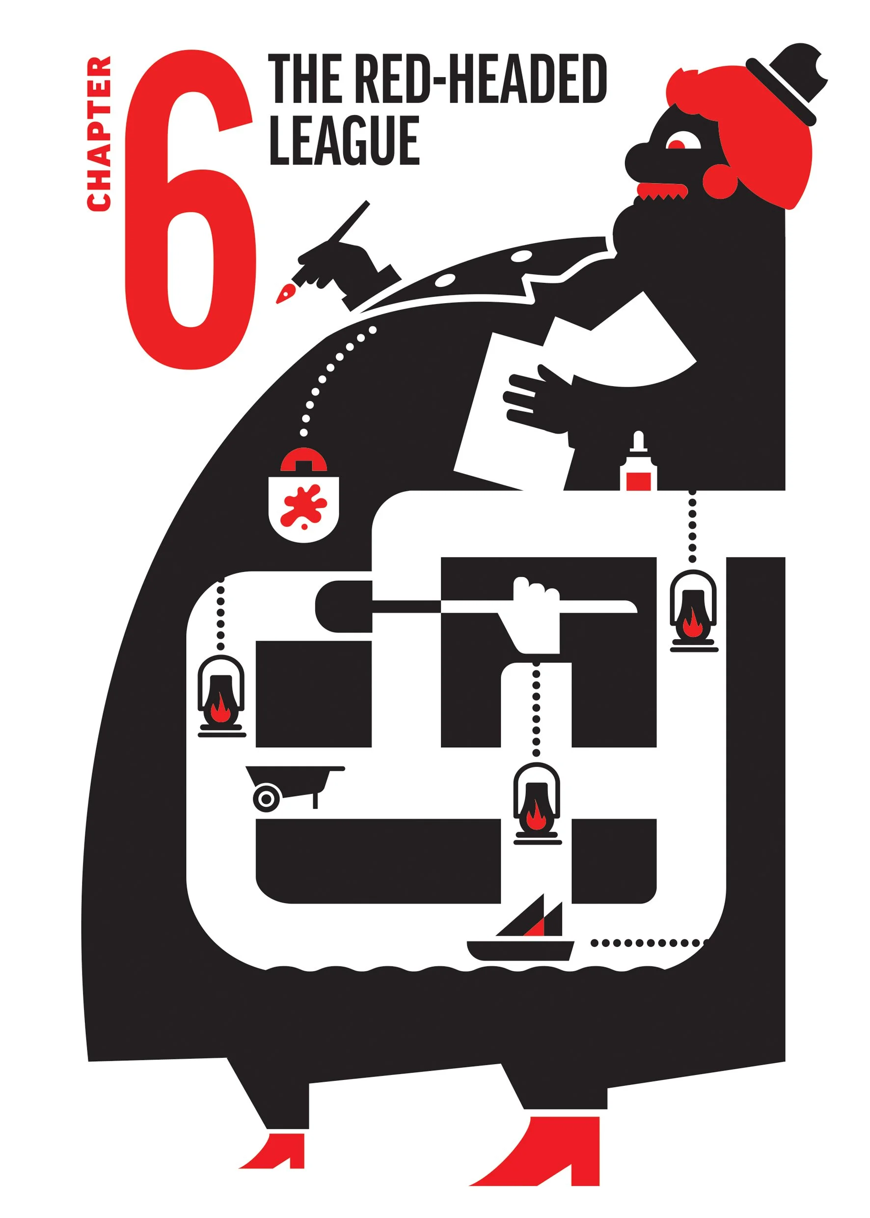 Description: "The Red-Headed League" is a captivating short story by Arthur Conan Doyle featuring Sherlock Holmes and Dr. John Watson. The plot revolves around a peculiar job offer to a red-headed pawnbroker, leading Holmes to unravel a cleverly disguised criminal scheme. With his unmatched deductive skills, Holmes exposes the true intentions behind the seemingly harmless Red-Headed League. I created an illustrative design that was inspired by the style of graphic designer David Plunkert.